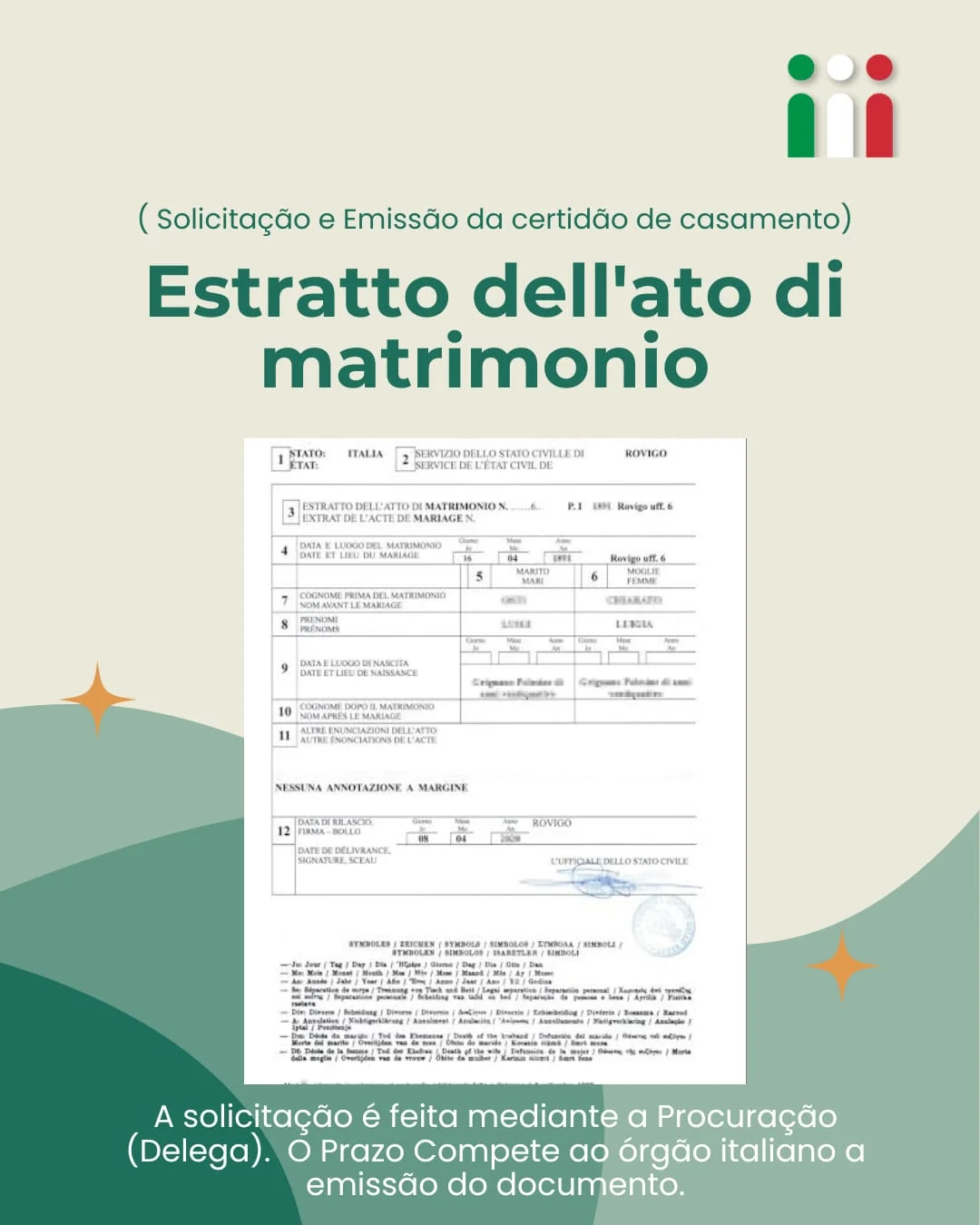 Contrate agora: Solicitação e Emissão do estratto dell’atto di matrimonio